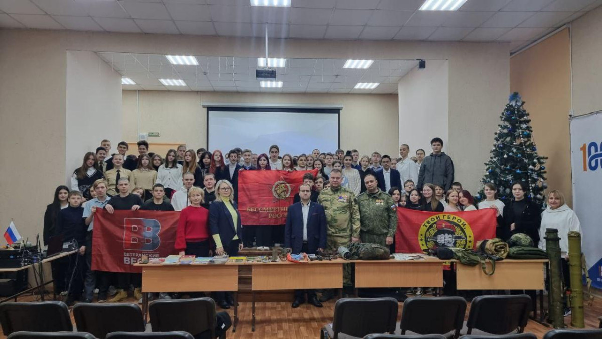 Урок мужества «Героями не рождаются» для учащихся средней школы №100 провели руководитель исполкома регионального отделения Бессмертного полка России в Саратовской области, участник специальной военной операции Андрей Бердников и волонтер проекта «Твои герои, Саратов!» Олег Мысов.