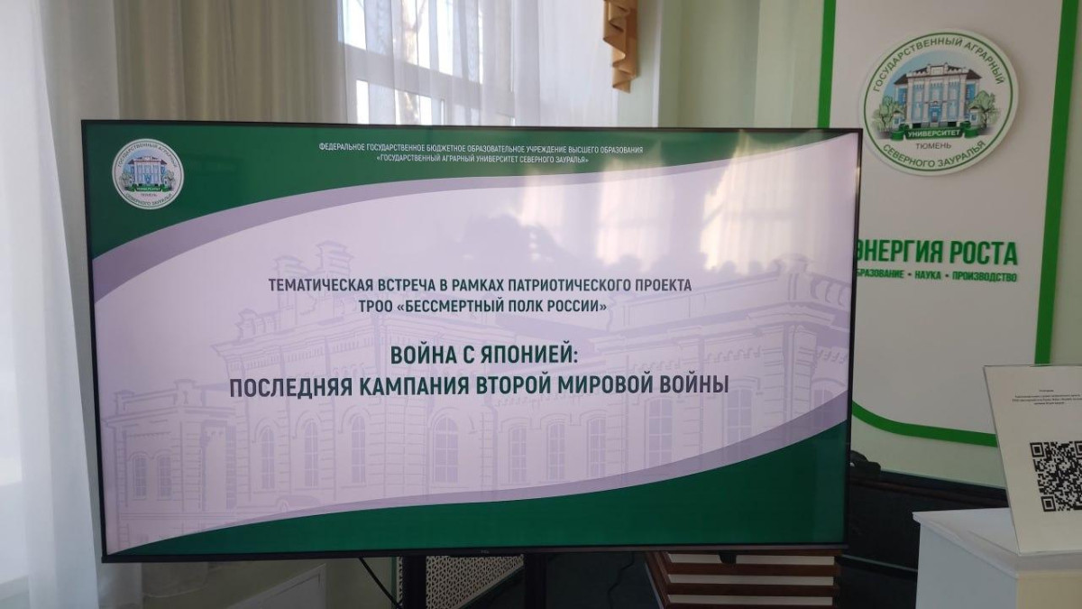 Команда регионального отделения «Бессмертного полка России» в Тюменской области продолжает образовательные встречи со студентами в рамках проекта «Война с Японией. Последняя кампания Второй мировой».
