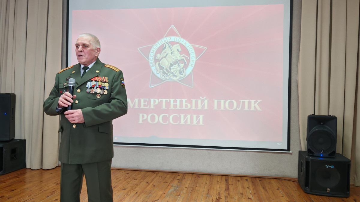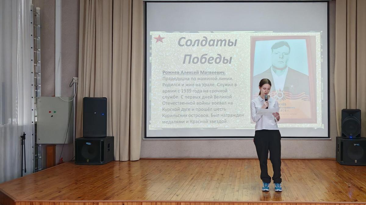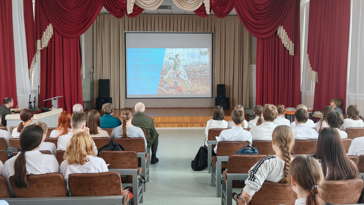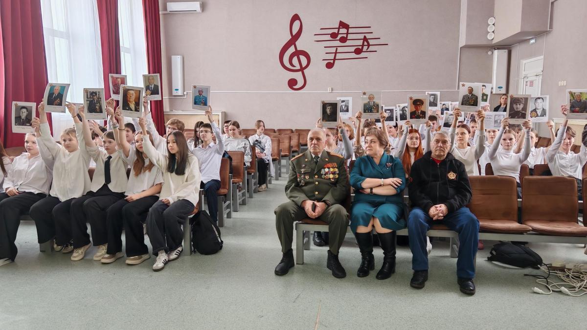 Школа №38 г. Тюмени приветствовала участников регионального отделения Бессмертного полка России на встрече, посвященной сухопутным войскам России. Ребята с неподдельным интересом посмотрели видео об истории формирования сухопутных войск со времен княжеской дружины и до наших дней, а восьмиклассницы Анастасия Гаура и Софья Чикирева рассказали о героях своих семей – прадедах, участвовавших в Великой Отечественной войны.