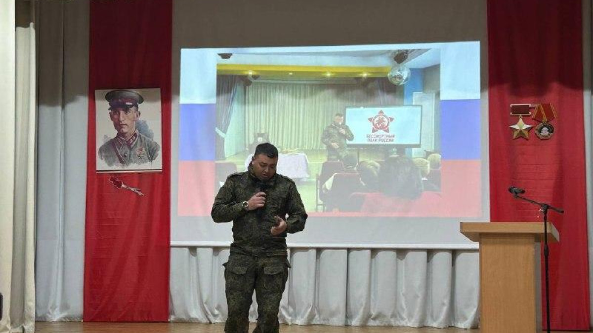 О подвиге героя и мужестве всех, кто защищает свою Родину на фронте, ребятам рассказал участник регионального отделения Бессмертного полка России в Республике Адыгея Владимир Стасев.