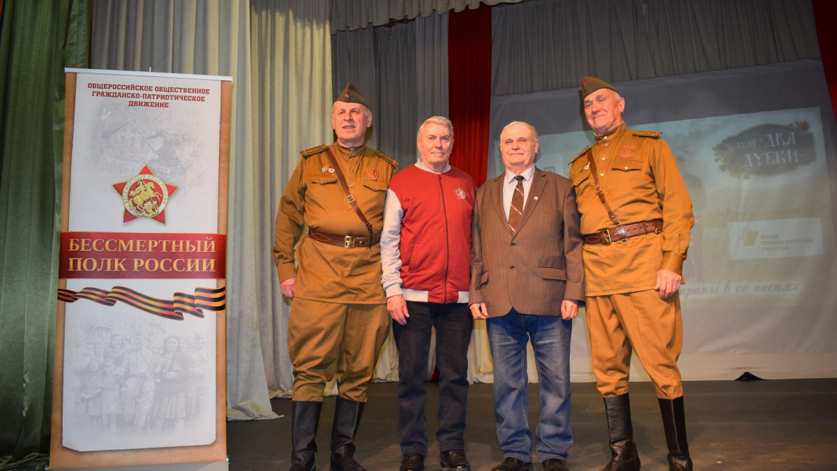Юнармейцы, кадеты, старшеклассники и ветераны Исетского вместе с вокальным дуэтом "Два Дубки" исполнили знакомые песни военных лет: "Катюша", "Гармошка фронтовая", "Шел солдат" и многие другие.