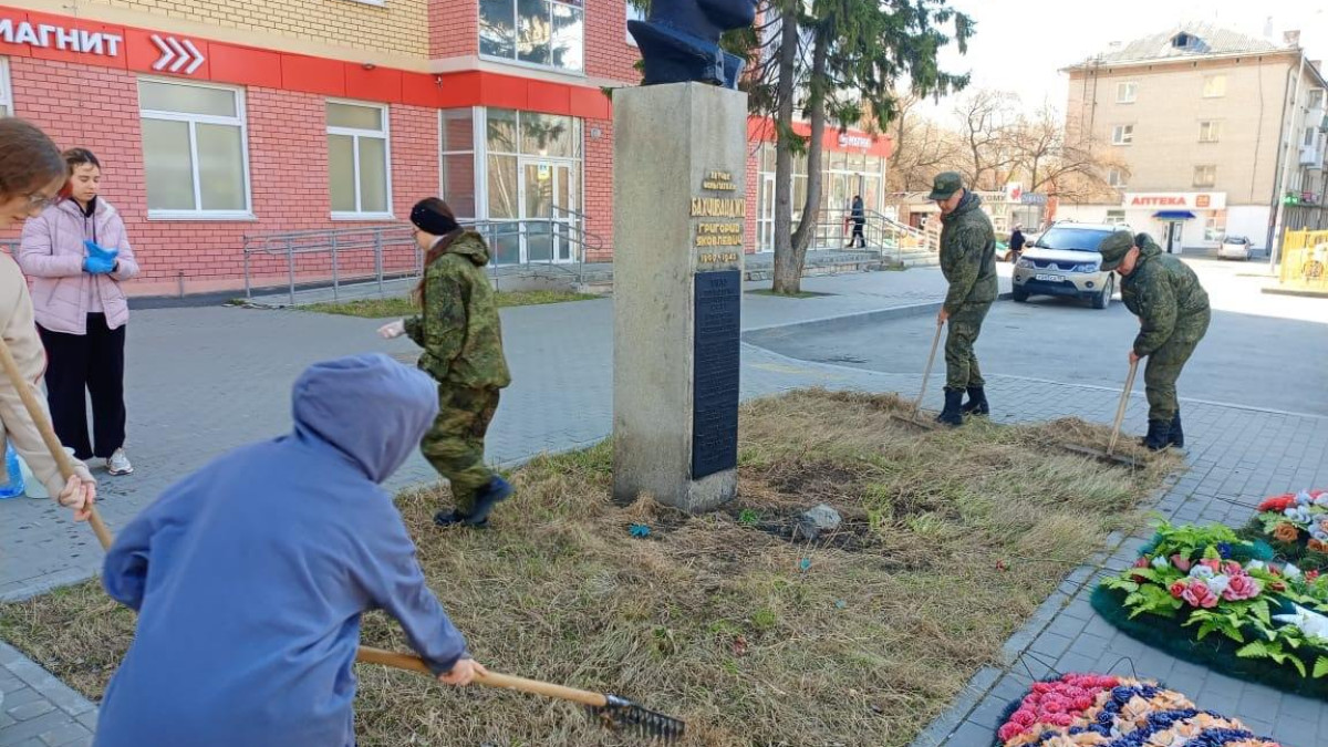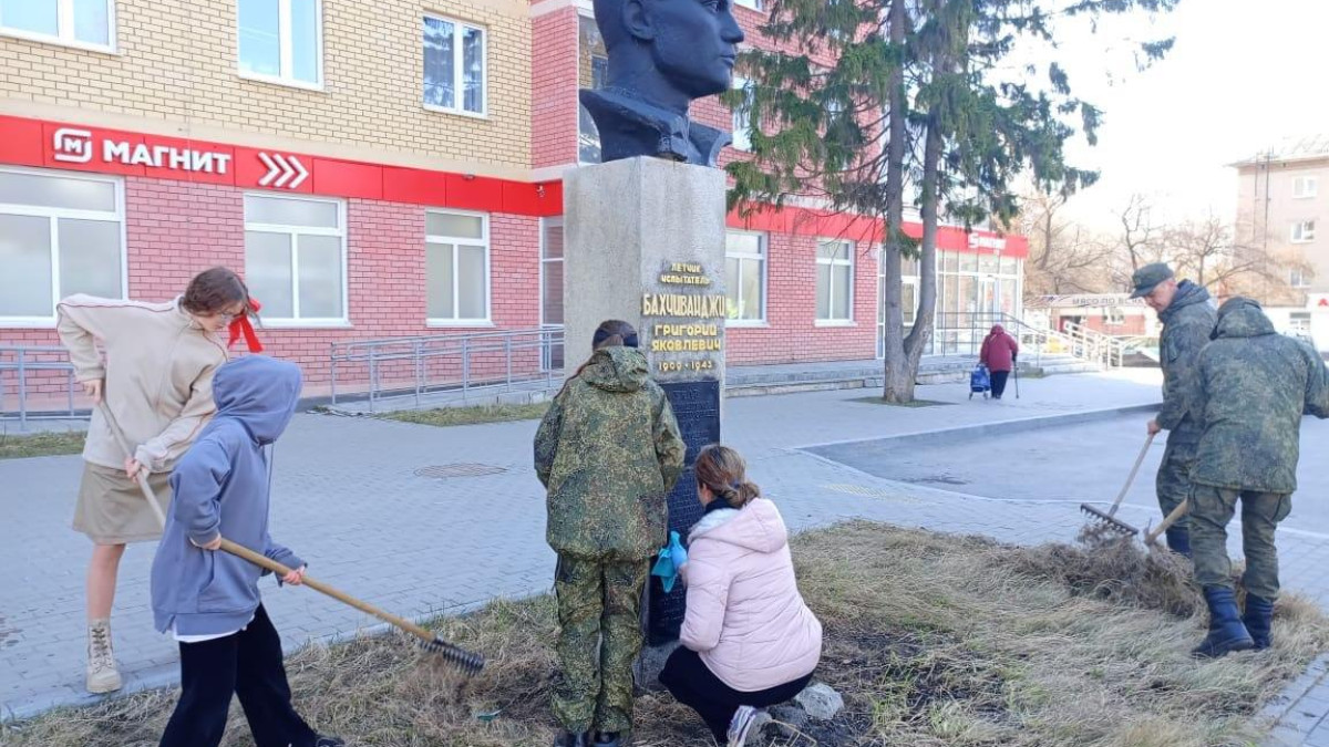 Ученики городской школы №92 навели порядок на Аллее Героев в рамках Всероссийской военно-патриотической акции «Верни имя Герою». Вместе с военнослужащими лётной части ребята прибрали территорию около памятника Герою Советского Союза, лётчику Г.Я. Бахчиванджи.