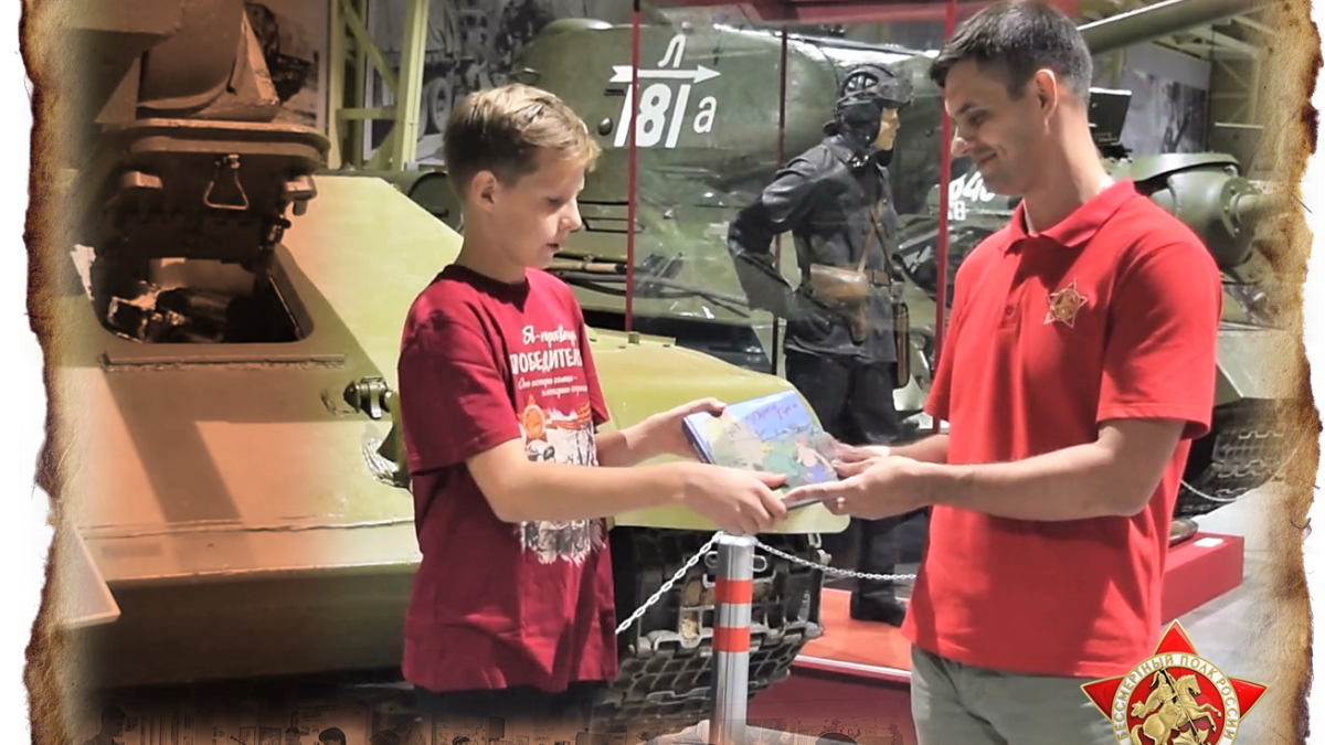 В Музее отечественной военной истории в Падиково руководитель регионального отделения Бессмертного полка России в Московской области Валерий Анисимов вручил детскую книгу о Великой Отечественной войне шестикласснику Илье - победителю розыгрыша, проведенного в социальных сетях активистами регионального отделения.