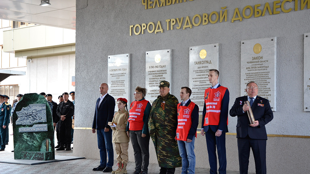 В Челябинске прошла торжественная церемония передачи южноуральской земли для памятной стелы «Красноармейцам из Челябинской области, защищавшим Ленинград», которая будет установлена на территории «Невского пятачка» в Ленинградской области. Событие было наполнено символами. Место проведения - у мемориального объекта «Челябинск-Танкоград - город трудовой доблести» на перроне №1 железнодорожного вокзала. Здесь принимали первые эшелоны ленинградцев, отсюда отправлялись на фронт танкисты.