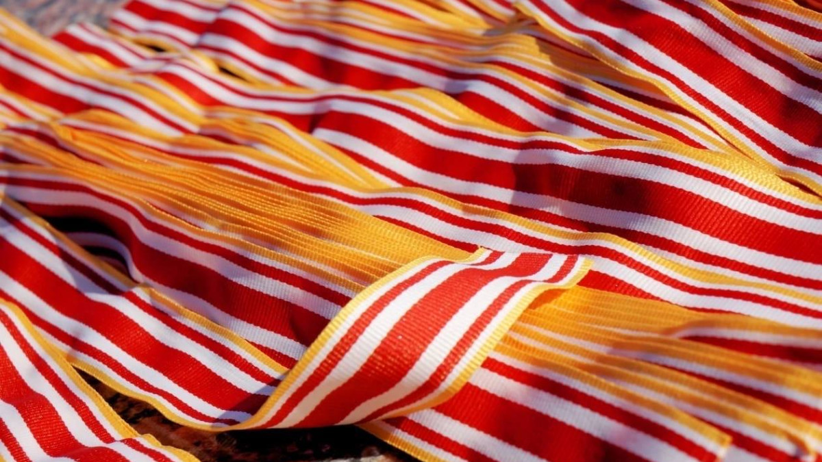 Бело-жёлто-красная муаровая лента – символ разгрома последнего союзника нацистской Германии – милитаристской Японии. Жёлтый цвет означает солнце и тепло, красный – цвет Победы, а белый – цвет флага Японии. Ленты такой расцветки крепились к медали «За победу над Японией», и этой высокой наградой были удостоены свыше 1 млн 800 тысяч советских военнослужащих и лиц высшего состава частей Красной Армии, Военно-морского флота и войск НКВД, принимавших непосредственное участие в боевых действиях на Дальнем Востоке.