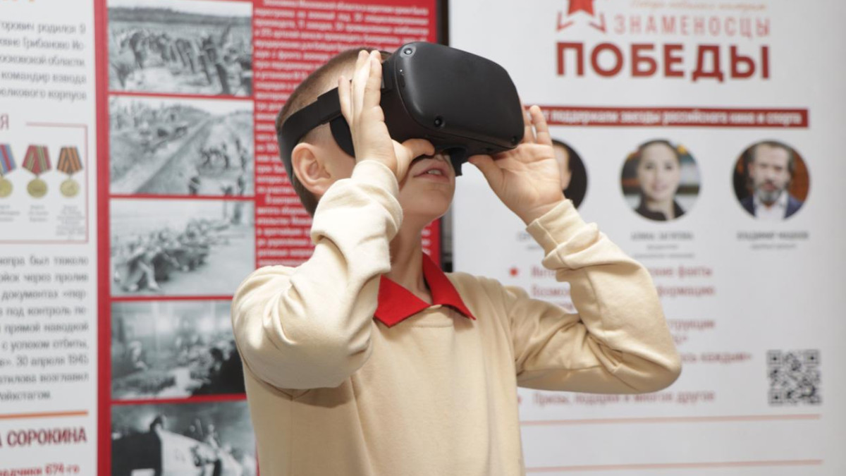 Участники торжественной церемонии водрузили виртуальные знамена Победы над Рейхстагом на выставке «Знаменосцы Победы», организованной региональным отделением Бессмертного полка России в Московской области, а также узнали о проекте "Рубеж Победы. Битва за Москву", который рассказывает о боевом и трудовом вкладе жителей округа в Великую Победу.