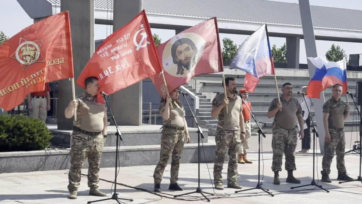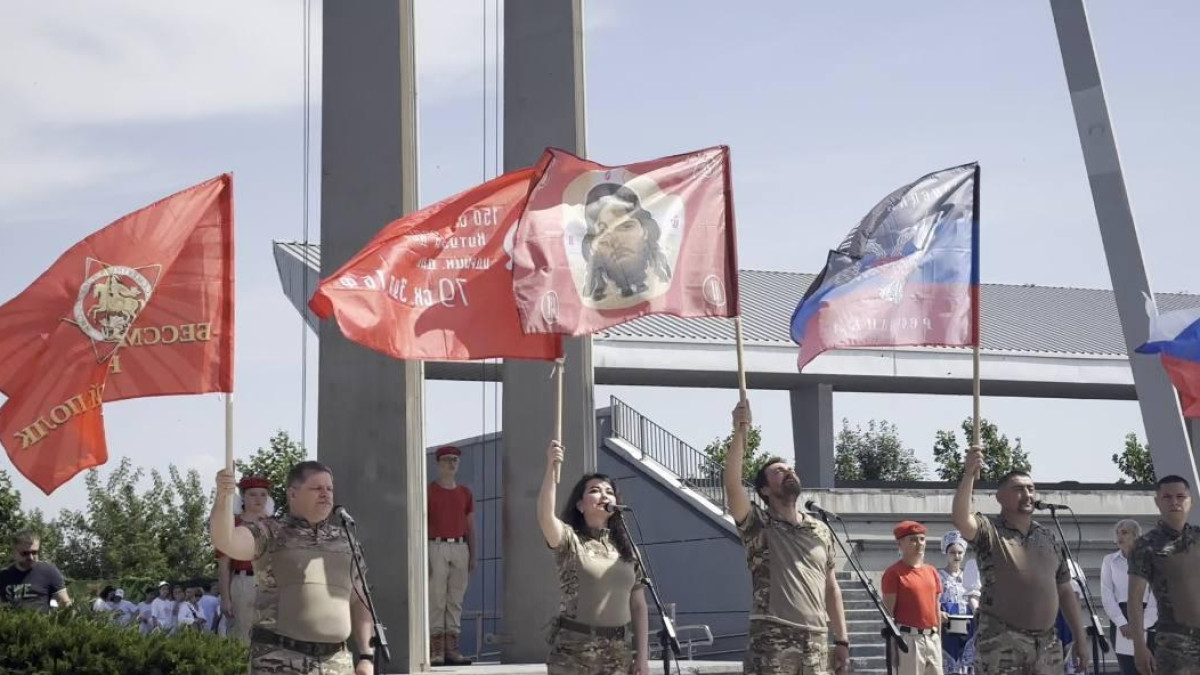 Поздравления в День России звучат сегодня по всей стране. Перед жителями Мариуполя выступили артисты фронтовой агитбригады. Член регионального штаба Бессмертного полка России в Московской области, победитель нескольких творческих конкурсов Движения Олег Непряхин в этой бригаде уже год. День России встретили в самом центре Луганской Народной Республики.