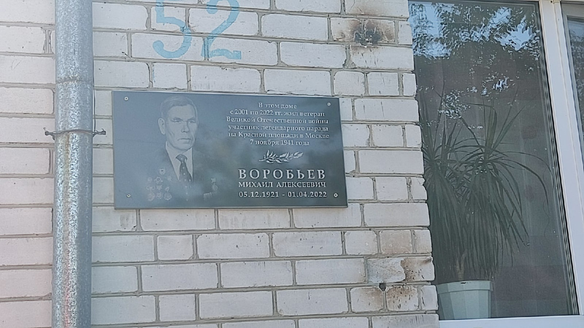В городе Ялуторовске Тюменской области состоялось торжественное открытие мемориальной доски на доме, в котором жил ветеран Великой Отечественной войны, участник Парада 7 ноября 1941 года на Красной площади Михаил Алексеевич Воробьёв. Вместе с руководством города, родственниками ветерана, общественными деятелями и юнармейцами почтили память земляка-героя и представители регионального отделения Бессмертного полка России в Тюменской области.