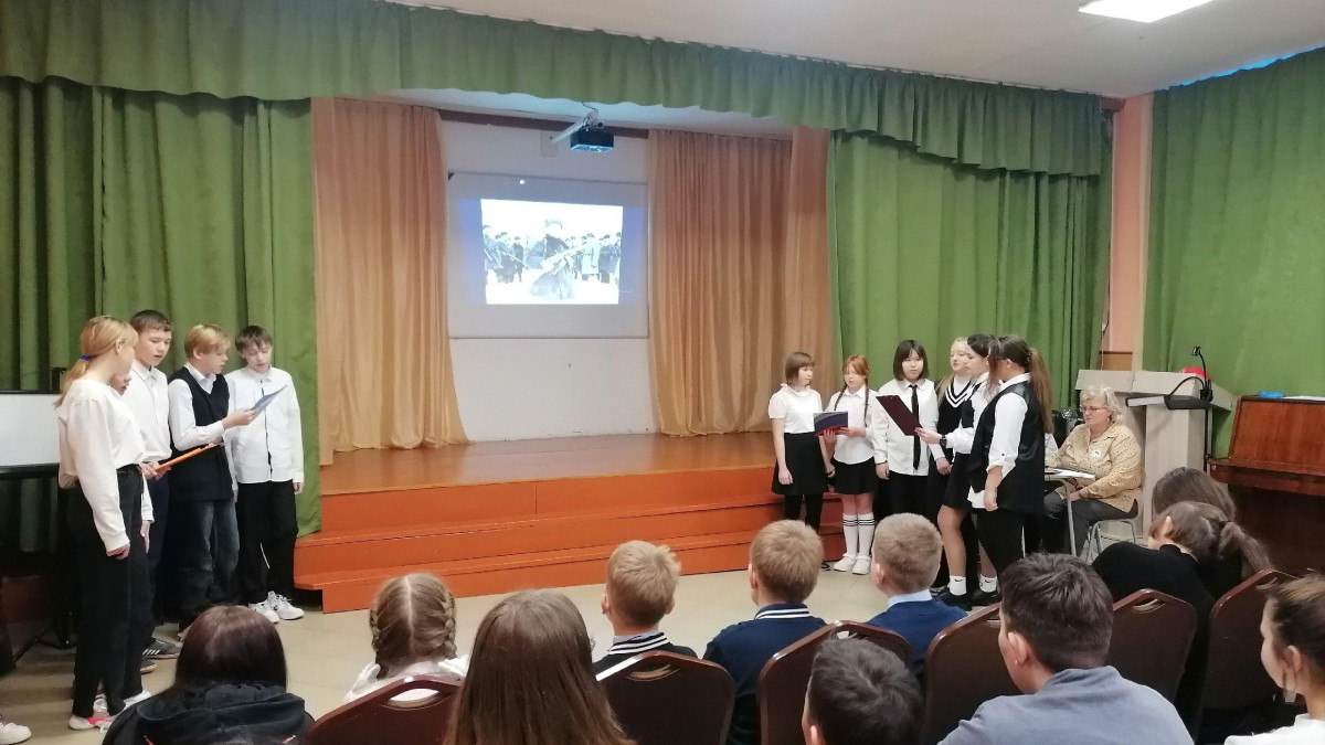 Итоговым мероприятием стал единый классный час для 6-11 классов «Дети войны». Ученикам было рассказано о судьбах детей, которые смогли пережить войну и о тех, кто погиб. Школьниками 7 класса были исполнены песни, а ребята 5, 8, 10 и 11 классов прочитали стихи и исторические справки. Напомнили ученикам и о борьбе с фашизмом и в наши дни.