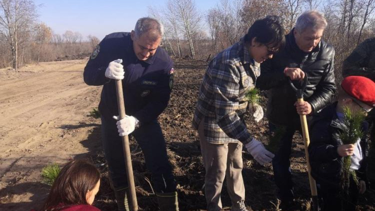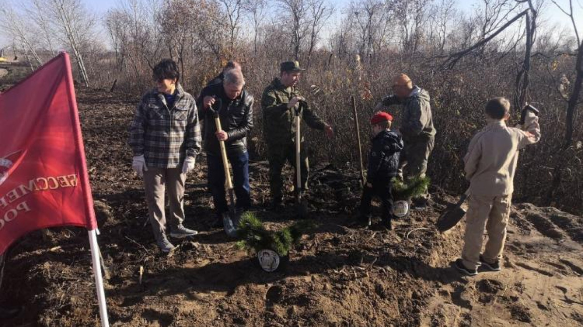 По замыслу организаторов акции всего здесь посадят 1418 молодых сосен и рябин - ровно столько дней продолжалась Великая Отечественная война.
