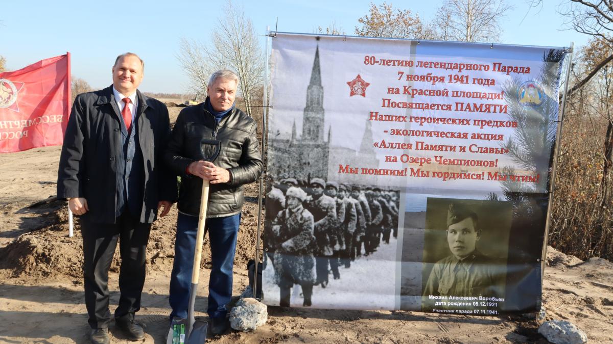 Подготовка площадки под посадку деревьев началась еще летом: провели работу по отсыпке болота, завезли чернозем. Создание Аллеи памяти приурочено к 80-летию легендарного парада на Красной площади, 7 ноября 1941 года в Москве. Соответственно и длиться эта экологическая акция будет до 7 ноября, участие может принять каждый желающий. Сейчас деревья уже сажают до 20 человек ежедневно, это неравнодушные тюменцы, спортсмены, общественные деятели.