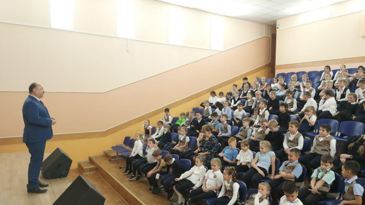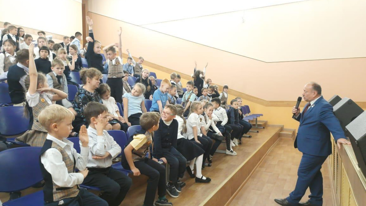 В средней общеобразовательной школе №6 города Южно-Сахалинска руководитель штаба регионального отделения Бессмертного полка России в Сахалинской областной Андрей Фугенфиров поговорил с учащимися младших классов на тему «С чего начинается Родина?»