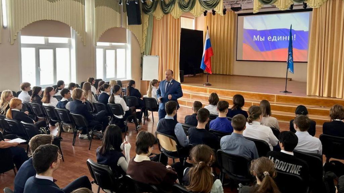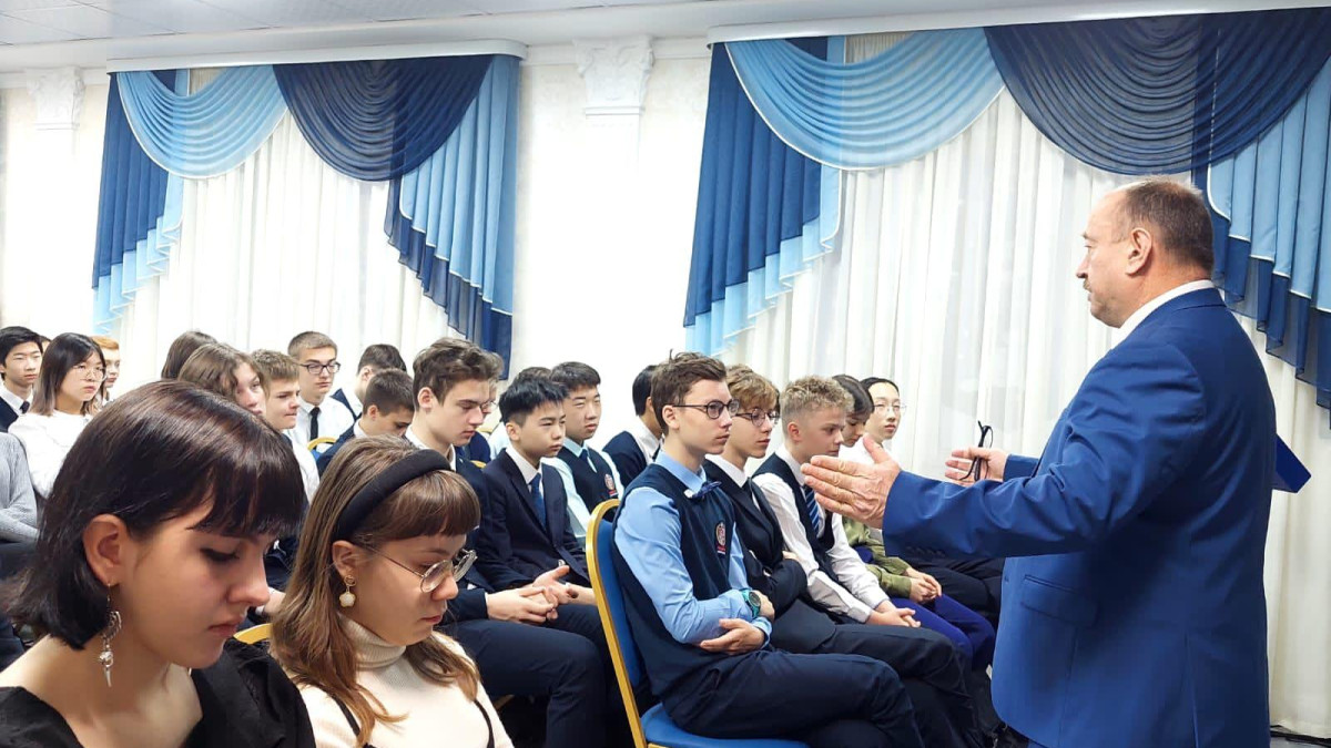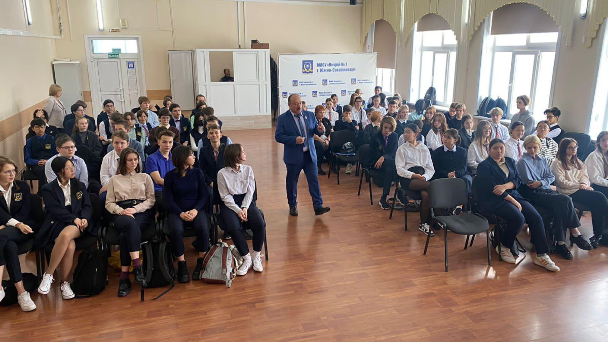 Руководитель штаба регионального отделения Бессмертного полка России в Сахалинской области Андрей Фугенфиров провел для старшеклассников Лицеев №1 и №2 лекции о главных исторических событиях и положении России в мировой геополитической обстановке.