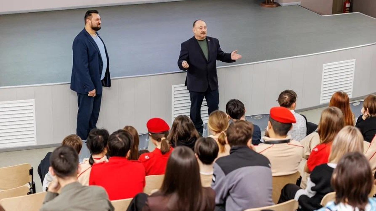 В честь 80-летия прорыва блокадного кольца вокруг Ленинграда руководитель штаба регионального отделения Бессмертного полка России в Сахалинской области Андрей Фугенфиров выступил с Уроком о важном перед учащимися средней общеобразовательной школы №26.