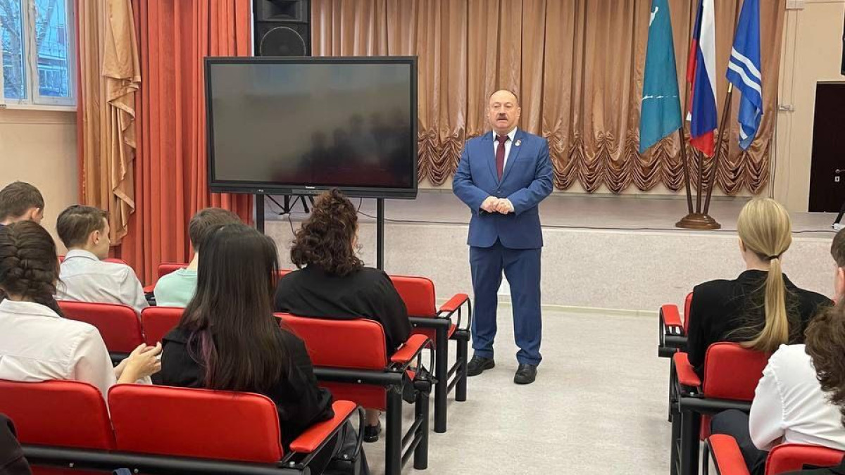 В средней общеобразовательной школе №5 города Южно-Сахалинска руководитель штаба регионального отделения Бессмертного полка России в Сахалинской области Андрей Фугенфиров провёл для старшеклассников Урок Мужества.
