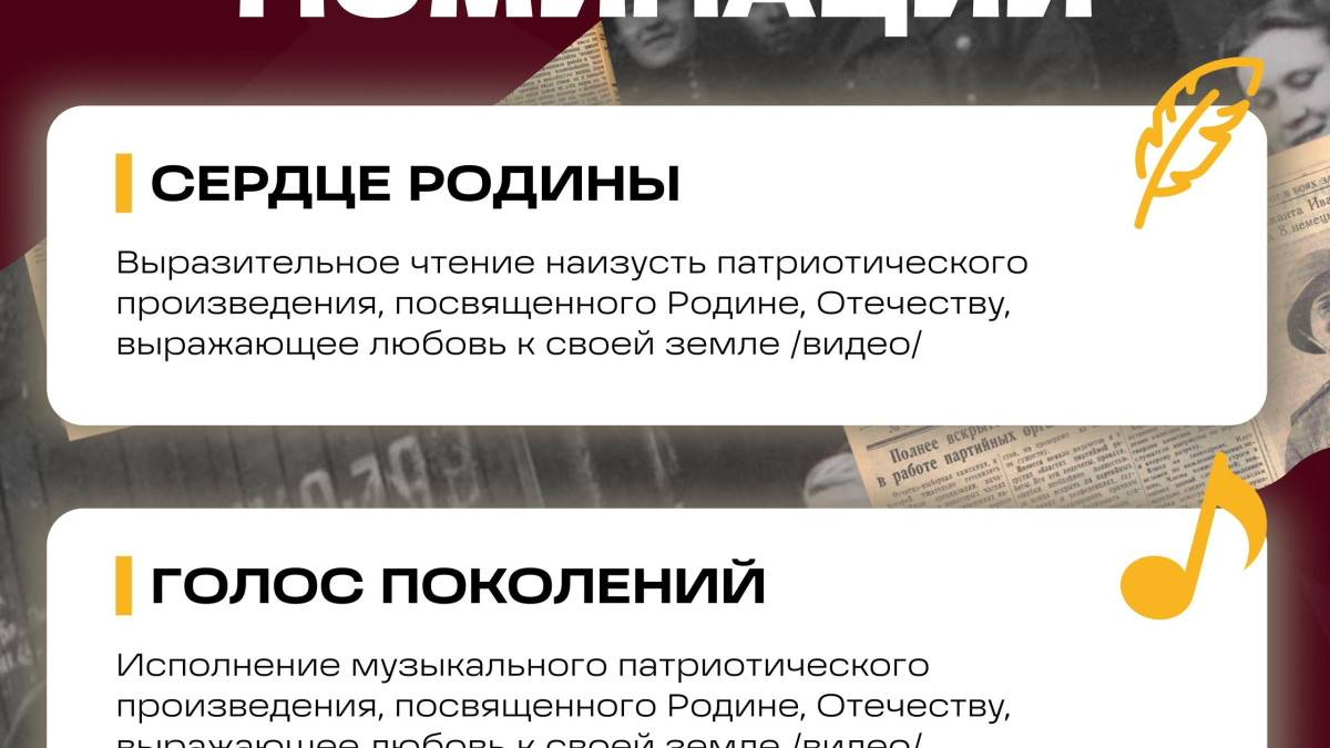 В Самарской области вновь стартовал конкурс творческих работ «На Zащите мира». Ежегодно региональное отделение Бессмертного полка России вместе с Самарским Союзом Молодежи проводит конкурс, который выявляет талантливых и артистичных жителей Самарской области. В этом году возможность показать всему региону свои способности у самарцев есть в четырех различных номинациях, о которых рассказали на карточках.
