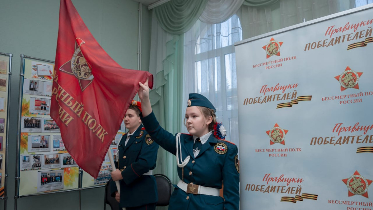 В актовом зале под звуки песни «Течет река Бессмертного полка» кадеты вынесли знамена. В торжественной обстановке Олег Владимирович вручил Тимуру Диплом победителя и памятные подарки, выразив надежду на то, что участников во Всероссийском конкурсе «Правнуки победителей» из этой школы непременно станет больше.