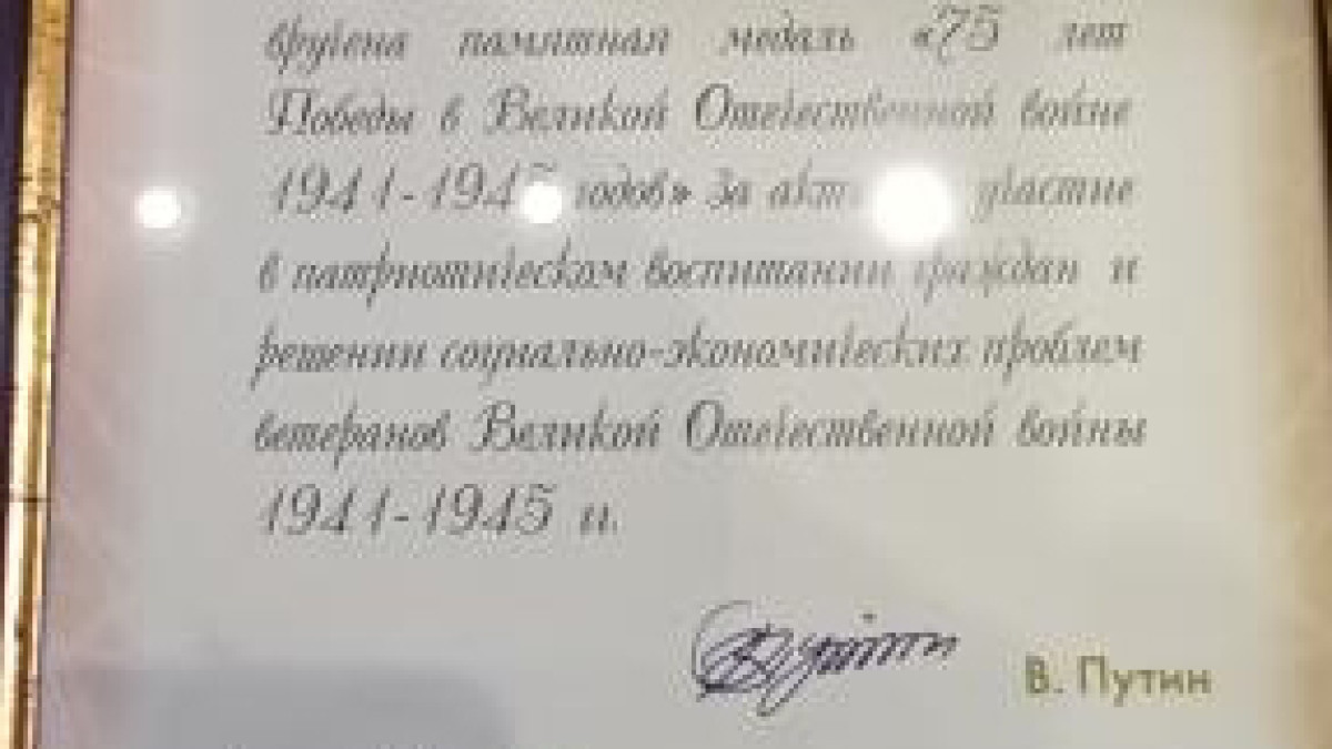 Региональному отделению ООД «Бессмертный полк России» в Республике Бурятия вручена памятная медаль Российского организационного комитета «Победа» «75 лет Победы в Великой Отечественной войне» за активное участие в патриотическом воспитании граждан и решении социально-экономических проблем ветеранов Великой Отечественной войны 1941-1945гг.