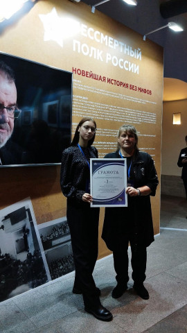 Руководитель исполкома регионального отделения Движения «Бессмертный полк России» в Новгородской области Светлана Орлова и активист регионального отделения Анастасия Кузнецова заняли 3 место в номинации «Лучшая концепция и тематико-экспозиционный подход» в конкурсе музейных экспозиции «Геноцид советского народа со стороны нацистов и их пособников в годы Великой Отечественной войны».