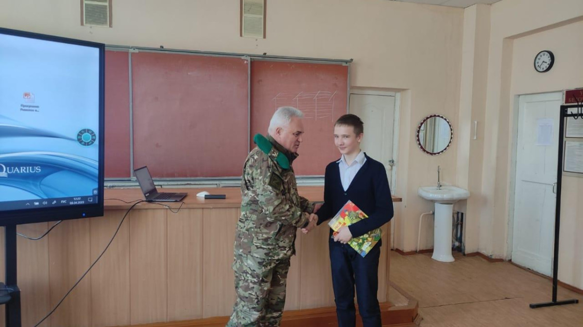 Школьникам был продемонстрирован видеоролик, как бойцы открывают заветную посылку и читают письмо Матвея. За этот сердечный подарок Андрей Малышев вручил школьнику книгу «Мой герой», шеврон подразделения, в которое пришла его посылка, и другие памятные подарки.