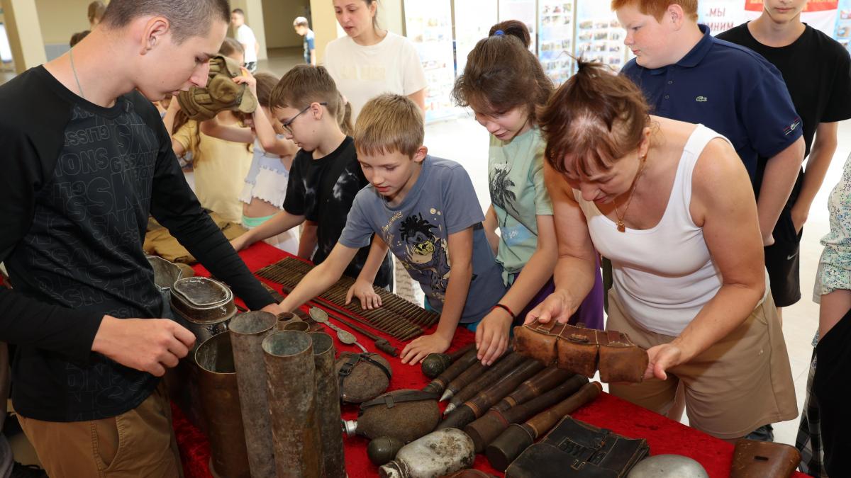 Детей и вожатых ожидали захватывающие экспозиции: фотовыставка «Мы помним подвиг солдата», коллекция советского и немецкого стрелкового оружия, подлинные артефакты времен Великой Отечественной войны, а также копии государственных наград различных эпох.