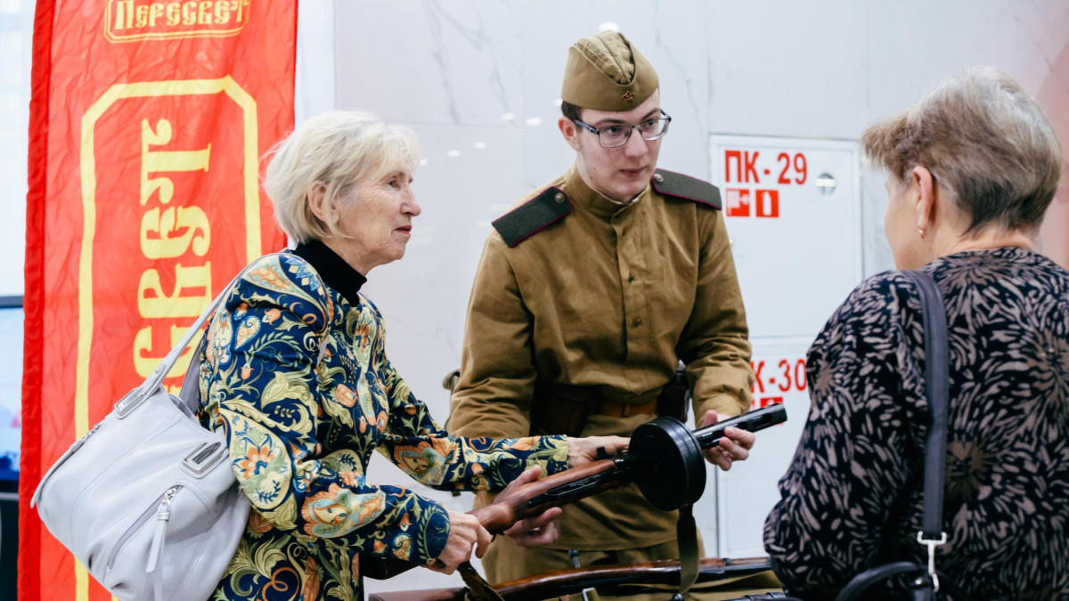 Перед началом кинопоказа гости могли погрузиться в историю через тактильные ощущения: на площадке работала выставка однополчан, в которой были представлены самые различные экспонаты – от раритетов Великой Отечественной войны до современного армейского обмундирования.