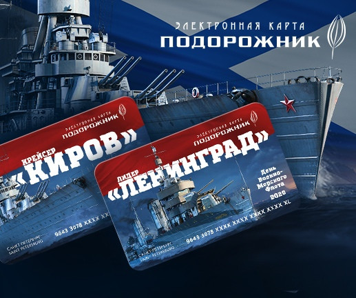Их в праздничный день можно будет приобрести в кассах метрополитена. На электронных проездных билетах изображены боевые корабли защищавшие Ленинград в годы Великой Отечественной войны - Краснознамённый крейсер «Киров» и лидер эсминцев «Ленинград».