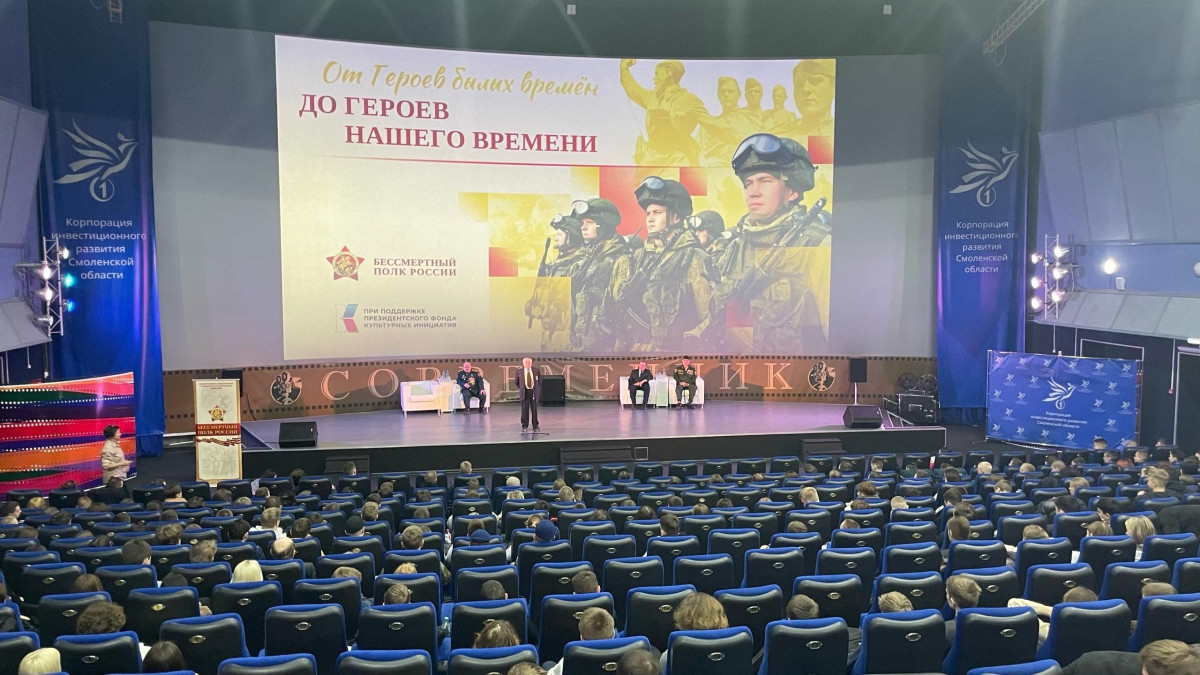 В Смоленском кинотеатре «Современник» провели встречу старшеклассников и студентов с руководителем Исполкома Бессмертного полка России Натальей Шадриной, Ветераном Великой Отечественной войны Виктором Якуниным, гвардии Лейтенантом, участником специальной военной операции Владимиром Степаненко, участником второй Чеченской войны, героем Российской Федерации Гасаном Раджаб оглы Наджафовым, Председателем Смоленской областной общественной организации ветеранов органов государственной безопасности Владимиром Паневиным, членом Центрального штаба Бессмертного полка России Денисом Пестуновым.