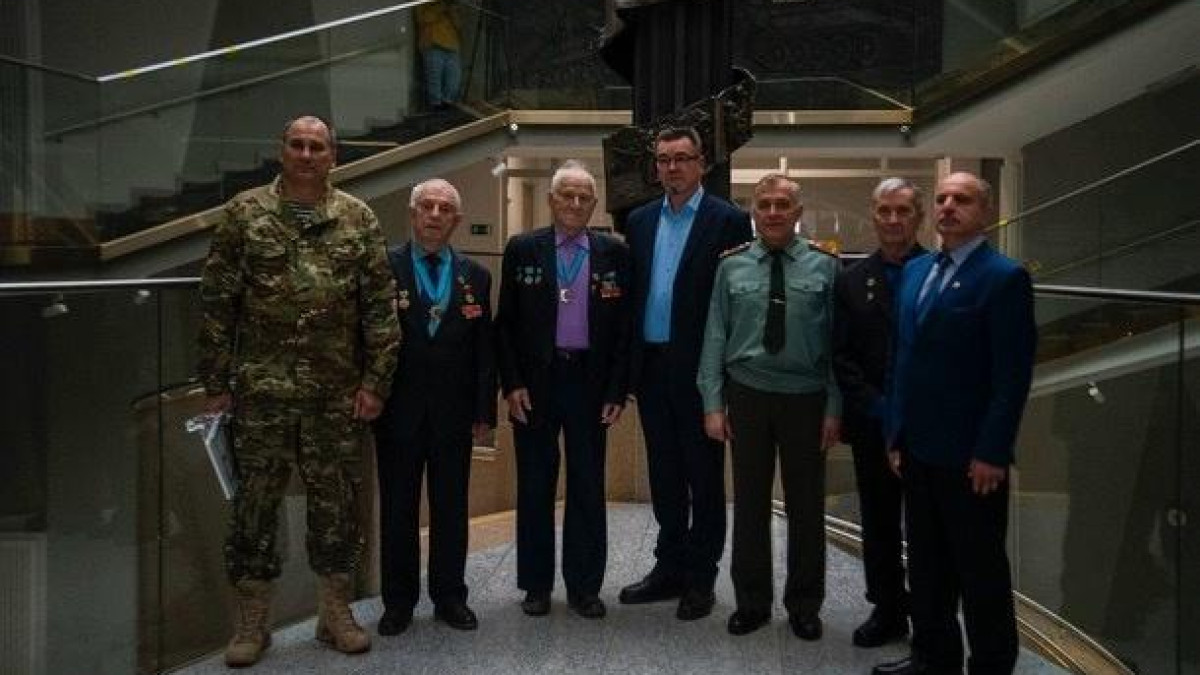 Заслуженную награду - медаль «За храбрость» II степени вручили участнику СВО ветераны Великой Отечественной войны, участники освобождения Южного Сахалина в 1945 году Вячеслав Гаврилов и Василий Андреев.