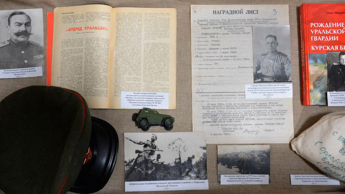 «Не менее масштабные героические бои шли в северной части Курской дуги – на северном фасе и на Орловском направлении, около железнодорожной станции Поныри и в танковом сражении под селом Борилово. В этих боях воевали, проявляли мужество и героизм, отдавали свои жизни ради Победы два уникальных воинских подразделения, сформированных на Урале: 70 армия войск НКВД и Уральский Добровольческий танковый корпус. В память о тех боях, о героическом освобождении Орловской и Курской областей от немецко-фашистских захватчиков и создана наша выставка. Мы не забываем!» – рассказала директор музея и представитель регионального отделения Бессмертного полка России в Свердловской области Наталья Просянкина на церемонии открытия выставки.