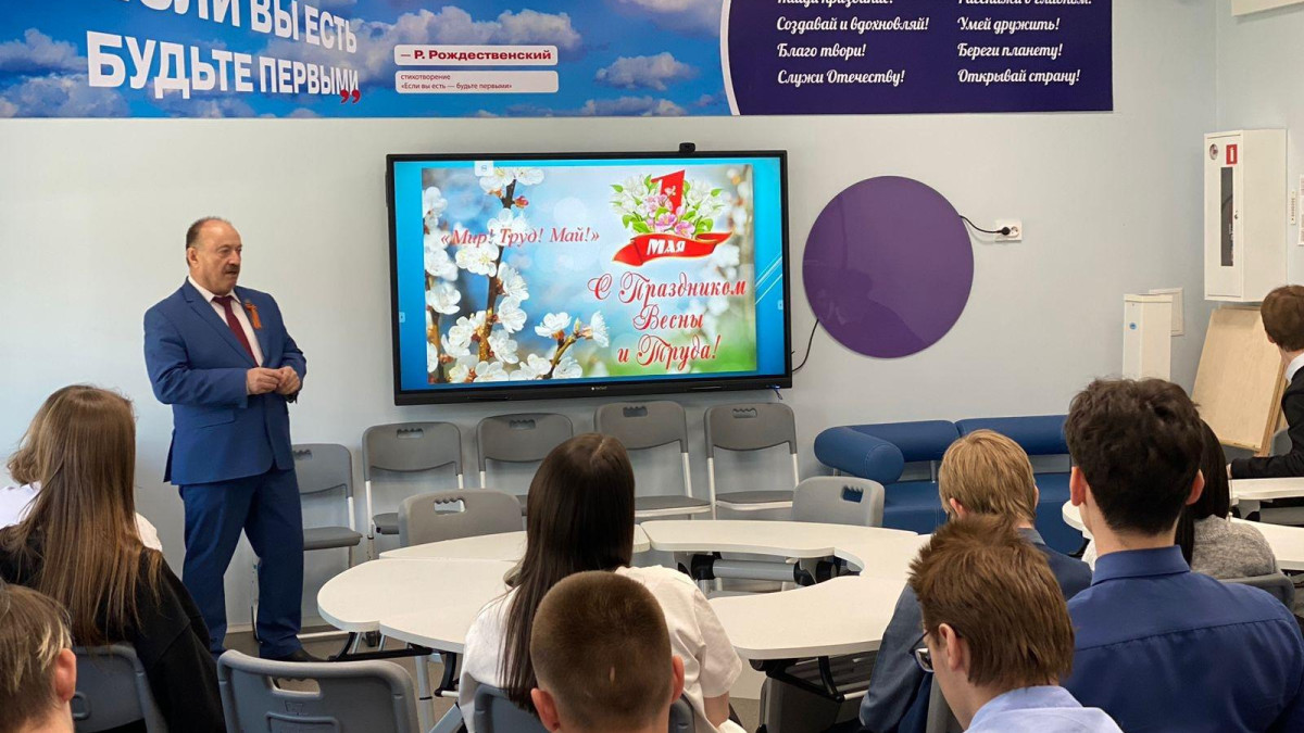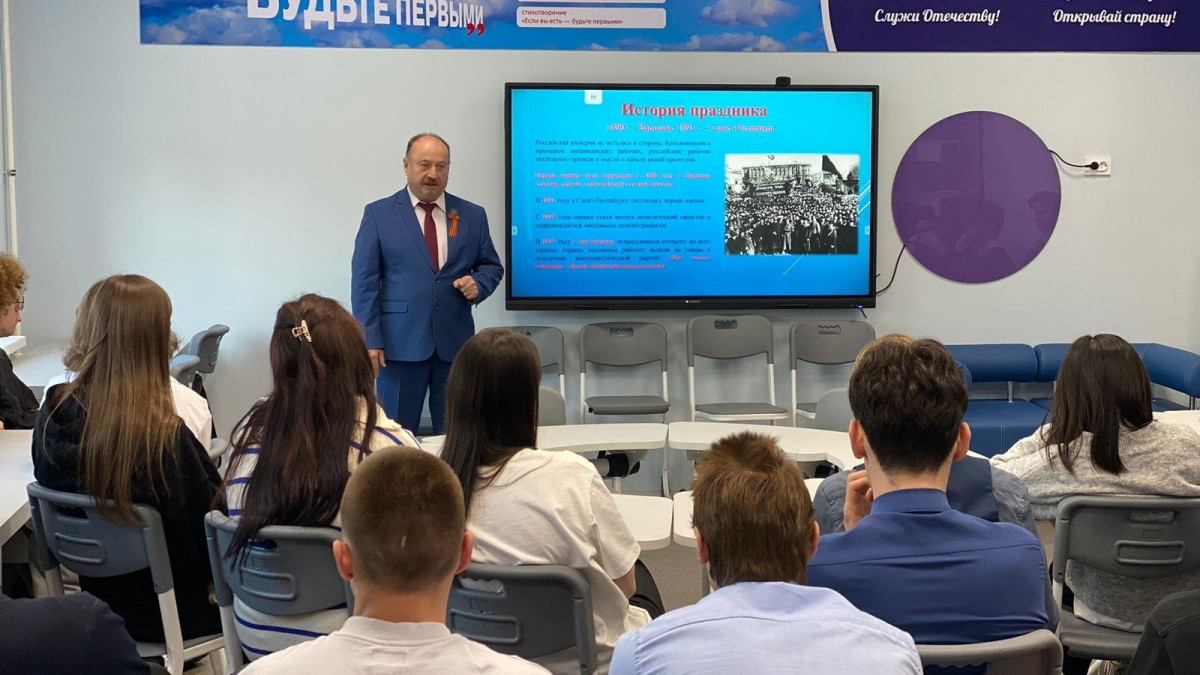 Также для школьников «Разговоры о важном» провел руководитель штаба регионального отделения Бессмертного полка России в Сахалинской области Андрей Фугенфиров. Он рассказал о празднике весны и труда, сделав акцент на трудовых подвигах советского народа, в тяжелейших послевоенных условиях за короткий период восстановивших свою страну.