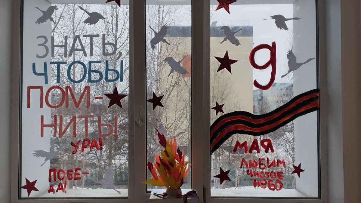 В Ямало-Ненецком административном округе активисты регионального отделения Бессмертного полка России вместе с своими детьми приняли участие в акции «Окна Победы».