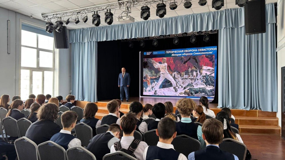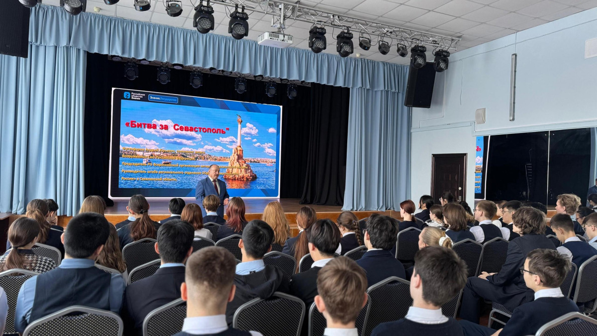 В Лицее №1 Южно-Сахалинска состоялся Урок мужества, посвященный героической истории Севастополя. Перед старшеклассниками выступил Андрей Фугенфиров, руководитель регионального штаба «Бессмертного полка России».