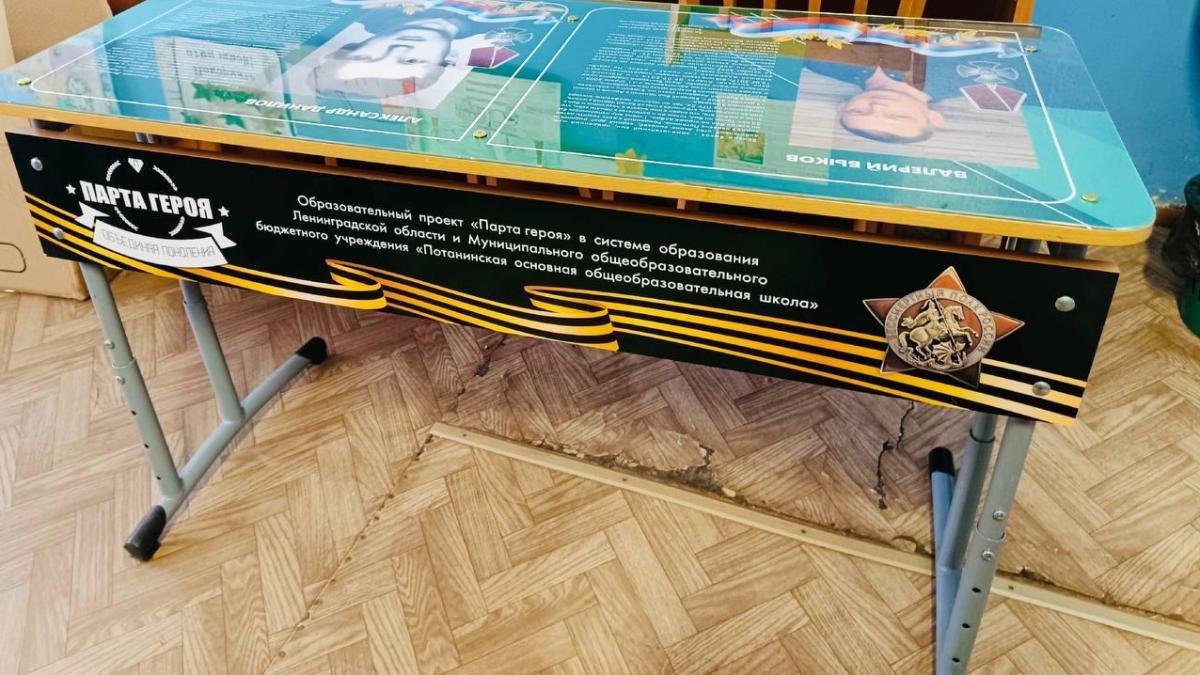 Региональное отделение Бессмертного полка России в Ленинградской области помогло в реализации проекта «Парта Героя» в МОБУ "Потанинская основная общеобразовательная школа" Волховского муниципального районаВ Ленинградской области в Волховском районе, посвященного участнику контртеррористической операции на Северном Кавказе Александру Данилову и участнику специальной военной операции Валерию Быкову. На мероприятии присутствовали глава Потанинского сельского поселения и родственники погибших героев.