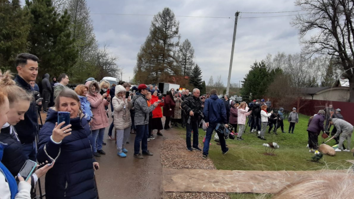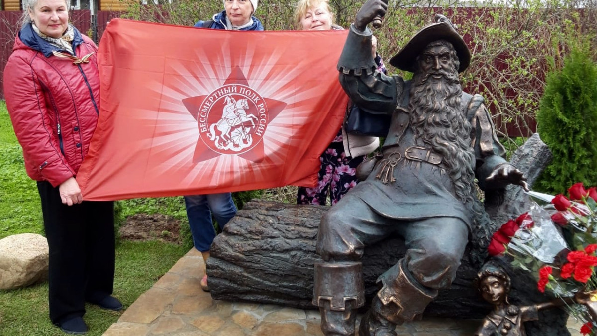 В этот же день в другом районе Дмитровского округа делегация Бессмертного полка России Московской области возложила цветы к мемориалу землякам в деревне Долгиниха и открыла там памятник участнику Великой Отечественной войны, великому артисту Владимиру Этушу.