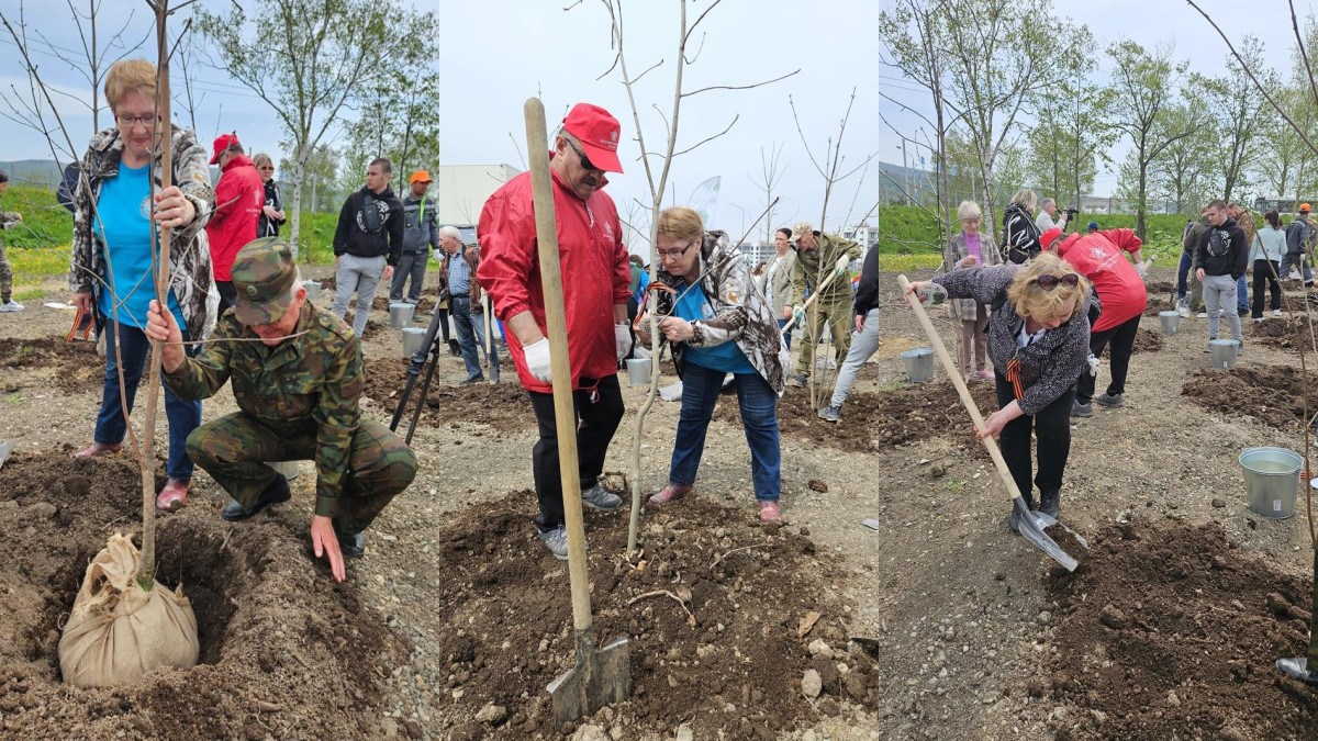 В Южно-Сахалинске, в ознаменование 79-летия Победы советского народа в Великой Отечественной войне 1941-1945 годов было высажено 79 деревьев. Главной ударной стали активисты Бессмертного полка России, ветеранских общественных организаций. Первым взялся за лопату лично мэр города Южно-Сахалинска Сергей Надсадин. А помочь главе города в посадке ясеня вызвался участник Великой Отечественной войны Василий Николаевич Андреев. Несмотря на почтенный возраст - ему идет - 95-й год - фронтовик в хорошей физической форме. В 2022-2023 годах в Южно-Сахалинске почти 70 в память о погибших в ходе Великой Отечественной войны было высажено почти 700 саженцев дуба. Теперь саженцев, которые когда-то станут огромными, дающими тень и свежий воздух деревьями, стало еще больше.