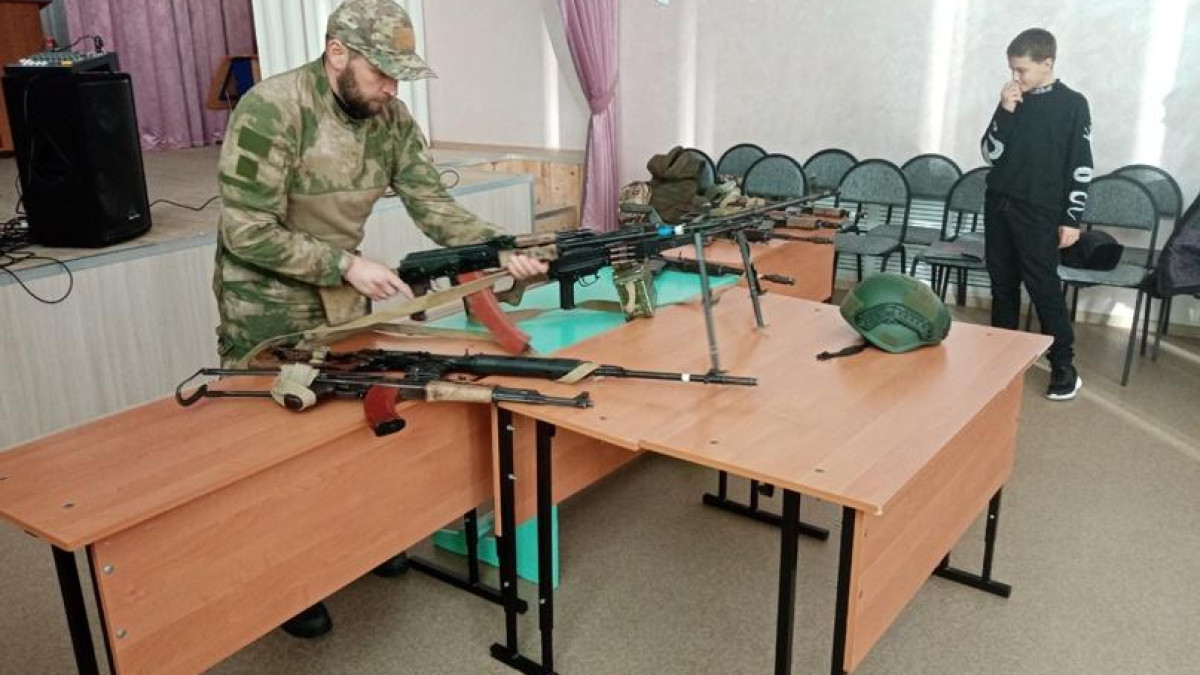 Также в гости к ребятам пришел доброволец теробороны с позывным «Девятый». Он не просто посетил школу, а привёз с собой макеты оружия, с которыми добровольцы тренируются, приобретая необходимые навыки обращения с оружием. Во встрече приняли участие и члены Клуба юных друзей Бессмертного полка России во главе с его руководителем – учителем истории Алексеем Курбатовым.