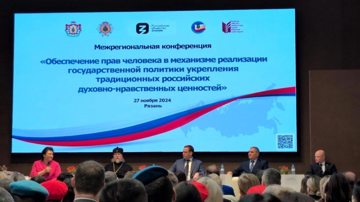 В Рязани состоялась Межрегиональная научно-практическая конференция «Обеспечение прав человека в механизме реализации государственной политики укрепления традиционных российских духовно-нравственных ценностей». Организаторами конференции выступили: Правительство Рязанской области, аппарат Уполномоченного по правам человека в Рязанской области, Российское общество «Знание», Общественная палата Рязанской области, Рязанская областная универсальная научная библиотека имени Горького.