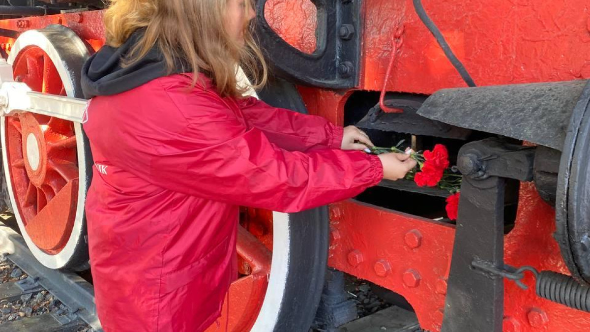Участники акции возложили цветы у паровоза-памятника на железнодорожной станции Волховстрой-1 в Ленинградской области. Этот паровоз первым после прорыва блокады Ленинграда доставил состав с боеприпасами и продовольствием на Финляндский вокзал 7 февраля 1943 года. Символично было почтить память начала блокады именно у этого памятника.