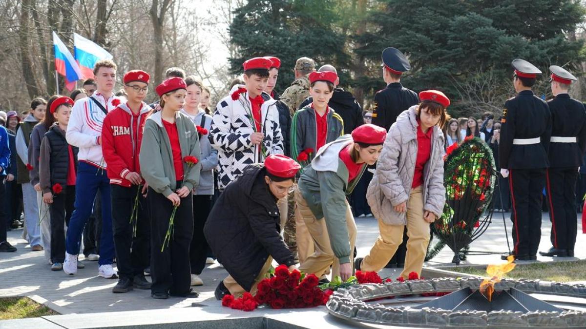 У Вечного огня мемориального комплекса «Братский садик» состоялось торжественное патриотическое мероприятие «Растим патриотов России», посвящённое Году единства народов России. Митинг объединил более 750 человек: ветеранов, представителей власти, поисковиков, казаков, юнармейцев, учащихся, студентов, курсантов, а также жителей города.