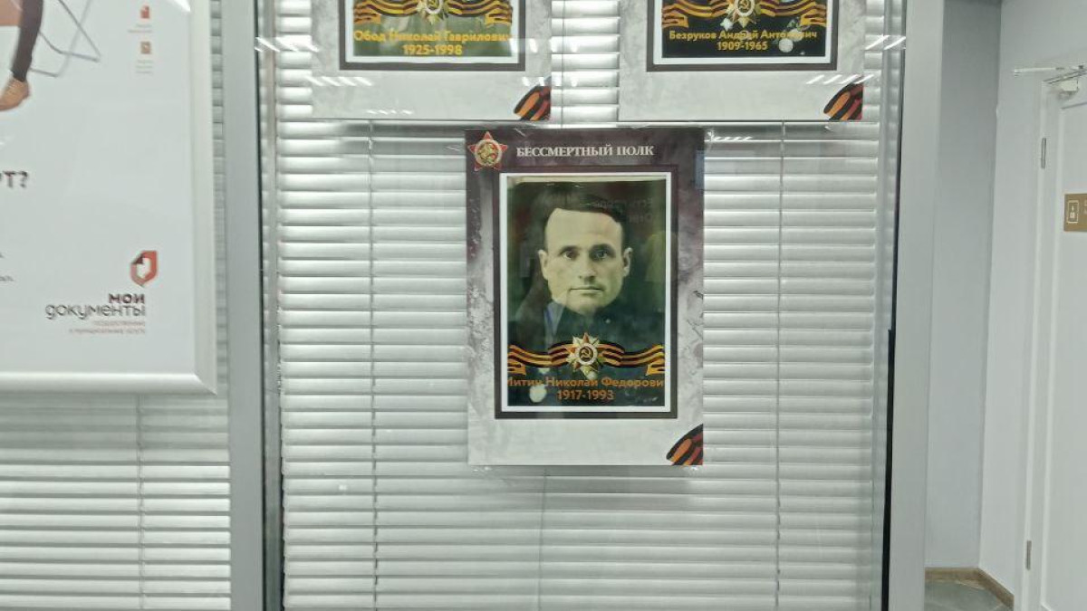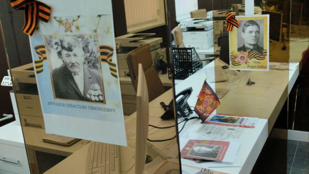 Портреты своих ветеранов разместили и сотрудники министерства финансов Хакасии и подведомственного учреждения ГКУ «Межведомственный центр бюджетного учета и отчётности». В фойе центра в Абакане на специальном стенде размещены не только портреты ветеранов Великой Отечественной войны – родственников сотрудников, но и стихотворные и прозаические произведения хакасских писателей-фронтовиков, а также наградные листы участников войны.