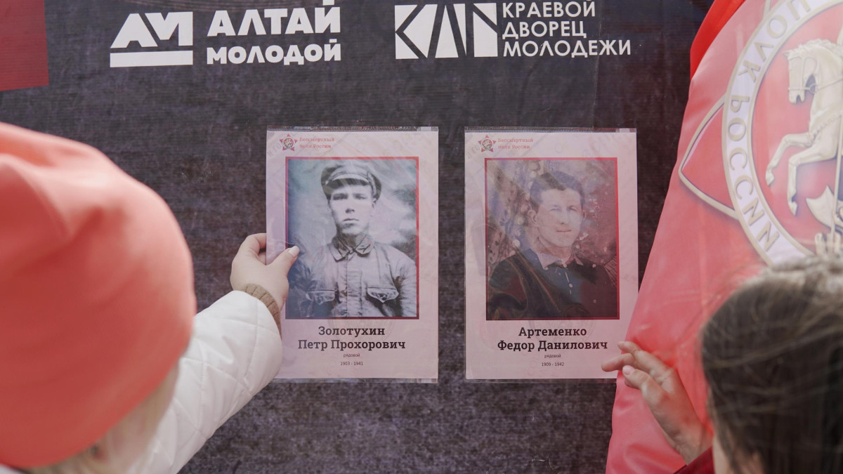 В Алтайском крае почтить память своего героя и присоединиться к акции «Бессмертного полка» горожане могут в парке культуры и отдыха «Центральный», где участники регионального отделения Движения установили «Стену памяти». На ней уже размещены портреты земляков - участников Великой Отечественной войны, останки которых были подняты при проведении поисковых работ. Портреты своих родных на «Стене памяти» разместили и участники прошедшего в парке концерта «Мы этой памяти верны», посвященного 79-летию Победы.