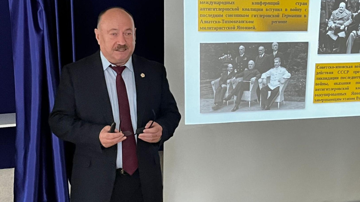 В преддверии Дня Победы над милитаристский Японией и окончания Второй мировой войны для коллективов организаций и учреждений Южно-Сахалинска были проведены лекции о важных исторических событиях 79-летней давности, организатором которых стало Российское общество «Знание». Лектором выступил руководитель штаба регионального отделения ООД «Бессмертный полк России» в Сахалинской области, полковник запаса Андрей Фугенфиров.