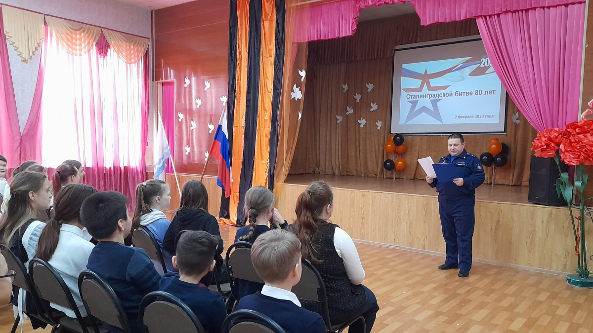 Обращаясь к молодежи, Андрей Юрьевич напомнил об основных этапах Сталинградской битвы, какие цели преследовало гитлеровское командование и какое мужество проявили советские солдаты и офицеры, оборонявшие Сталинград. Для победы советским командованием была блестяще проведена контрнаступательная операция «Уран», в результате которой в окружение под Сталинградом попала гитлеровская группировка войск, насчитывавшая 22 дивизии общей численностью в 300 тысяч человек.