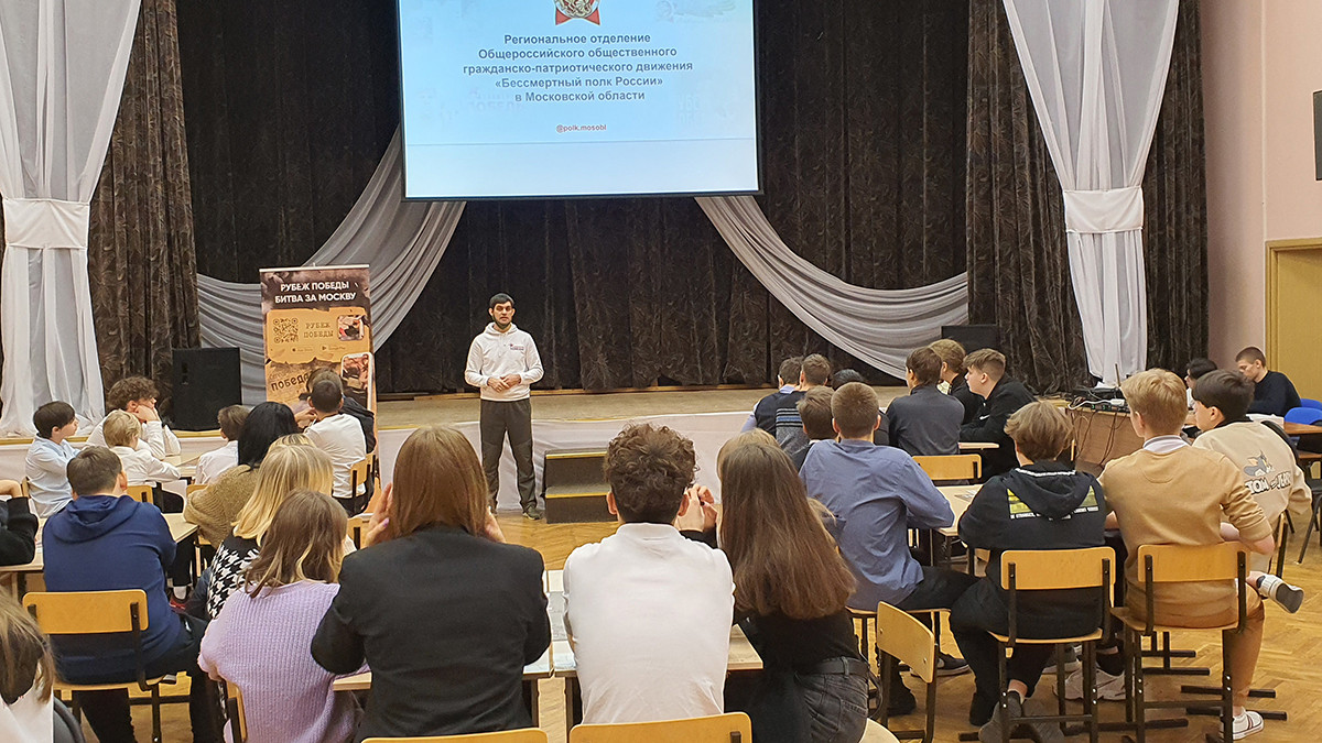 Для учащихся школ были организованы интерактивные уроки, которые включали в себя игру-викторину и виртуальное водружение Знамен Победы. Данные мероприятия вошли в цикл совместных мероприятий регионального отделения Бессмертного полка России и Главного управления социальных коммуникаций Московской области и посвящены 80-летию Битвы за Москву и контрнаступления Красной Армии. Как всегда, помощниками в проведении мероприятий выступили юные Волонтеры Подмосковья.
