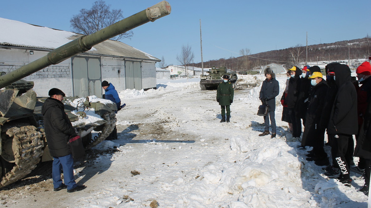 В канун Дня защитника Отечества в Южно-Сахалинске проведена акция «На денек - в Армию». Молодые ребята, в большинстве своем еще не служившие, посетили расположение танкового батальона, ознакомились с основными образцами оружия, узнали для чего предназначен строевой плац и какие, кроме одиночной строевой подготовки, на нем проводятся мероприятия, побывали на караульном городке и в парке боевых машин. Ну а после посещения ангара с боевыми танками, многие ребята пожелали служить в танковых войсках.