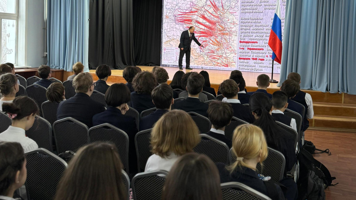 Также о тяжестях блокады и войны против нацизма Андрей Юрьевич рассказал на уроке мужества ученикам лицея №1 Южно-Сахалинска.