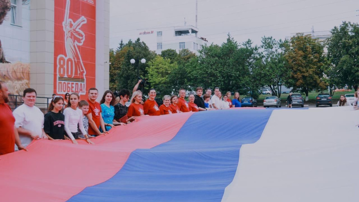 Кроме взвившегося в небо триколора, участниками акции был развёрнут большой флаг России как символ единства нашего народа.