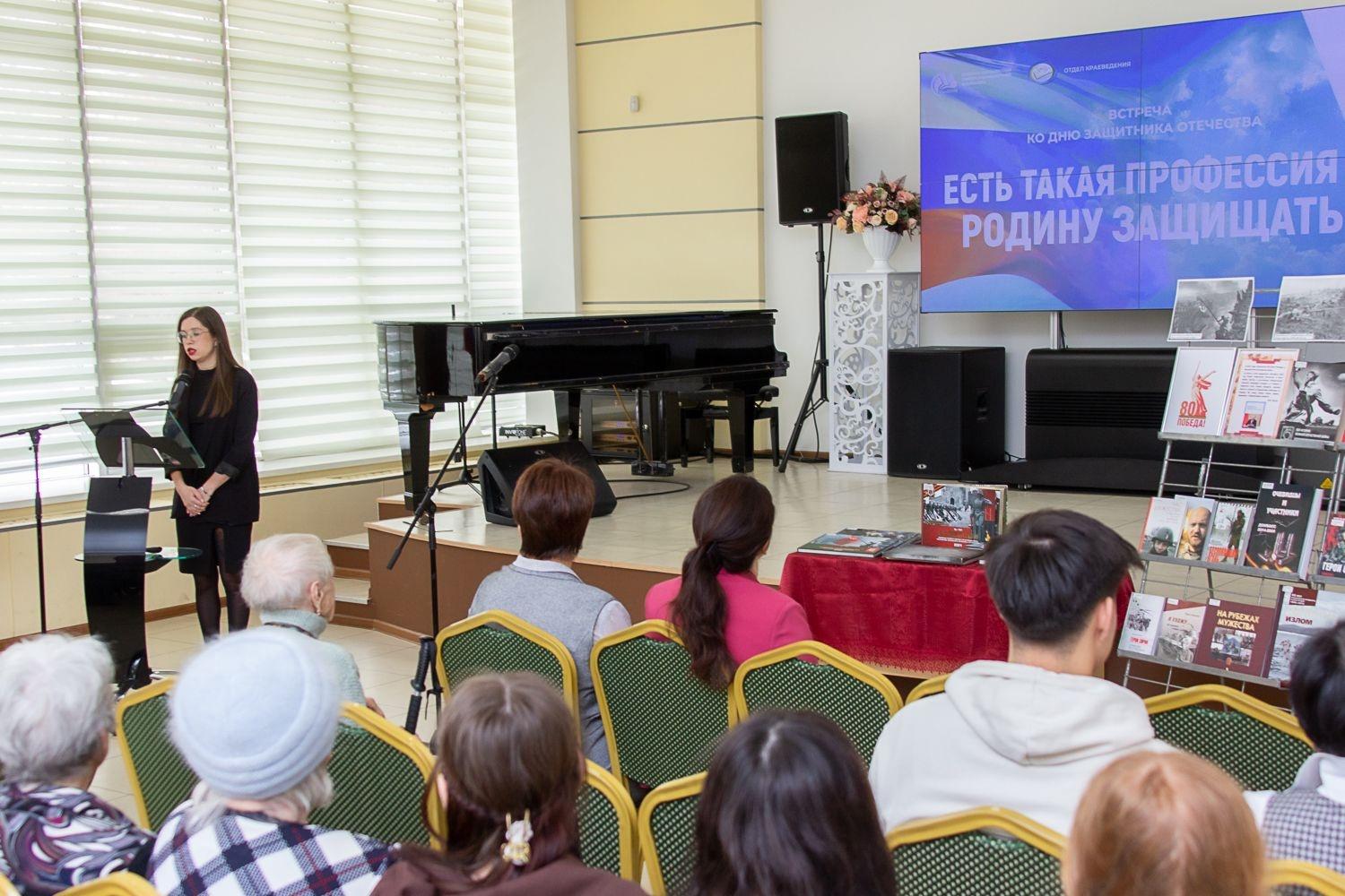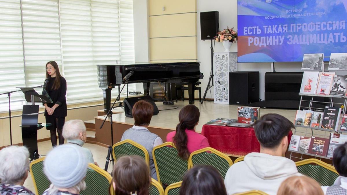 Тематический вечер «Есть такая профессия – Родину защищать» провели в Сахалинской областной универсальной научной библиотеке. Школьники, гимназисты, студенты и юнармейцы встретились с ветеранами боевых действий, участниками Движения, представителями общественной организации «Дети Войны» и других ветеранских организаций. На встрече руководитель регионального штаба «Бессмертного полка России» в Сахалинской области Андрей Фугенфиров рассказал об истории Дня защитника Отечества и напомнил о том, какой ценой в Великую Отечественную войну наши деды и прадеды защитили Дальний Восток.