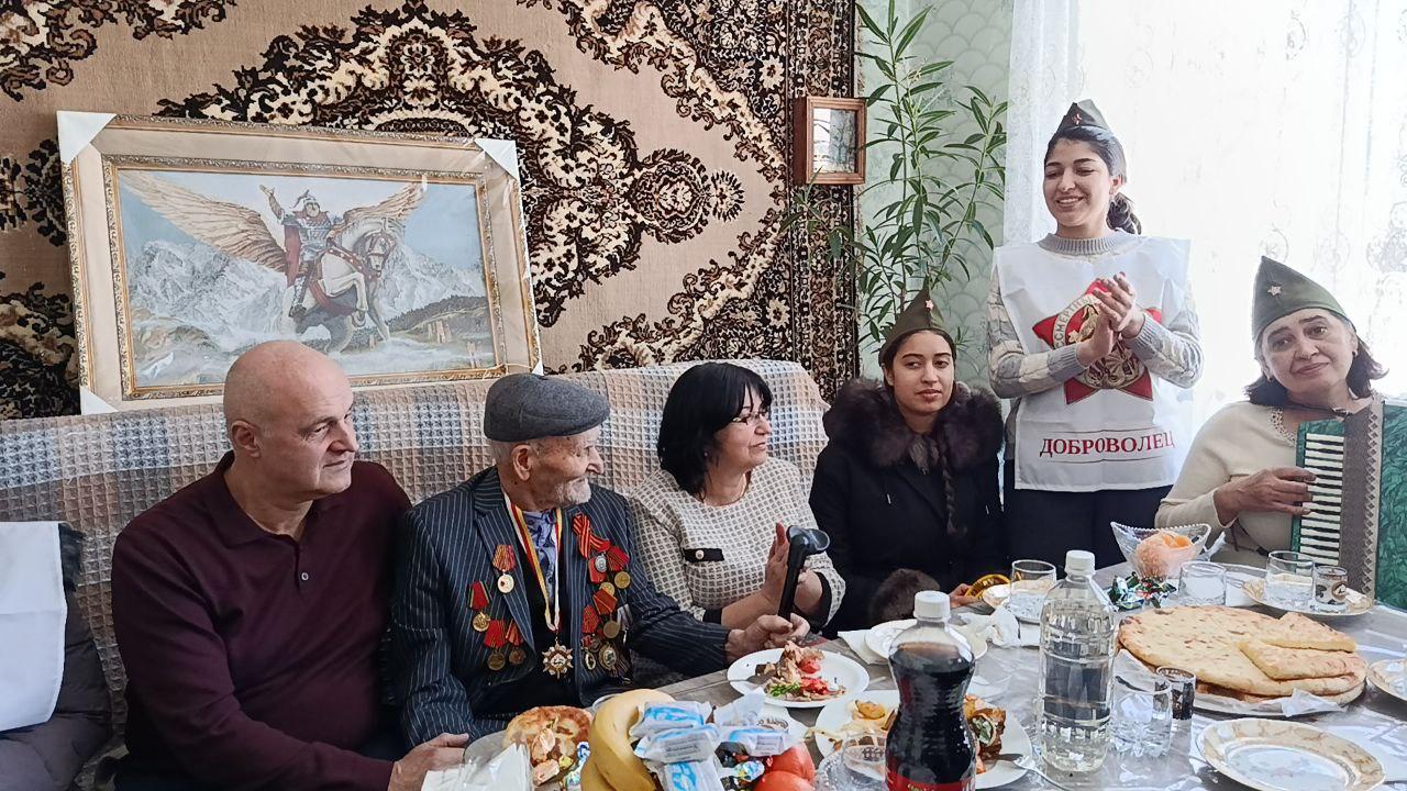 В праздничный день защитника Отечества торжественно поздравили участники «Бессмертного полка России» в Республике Северная Осетия – Алания под предводительством руководителя регионального штаба Эльбруса Бокоева. Однополчане сердечно поздравили ветерана Великой Отечественной войны, воевавшего в артиллерийской бригаде под Ленинградом и завершавшего Вторую мировую войну на Дальнем Востоке, Алексея Митрофановича Шевченко. Затем по поручению главы республики Эльбрус Абисалович вручил ветерану медаль «80 лет Великой Победы» и памятные подарки.